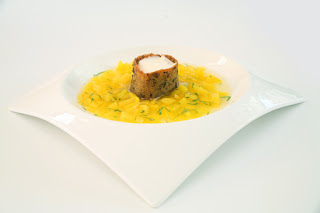 יוצקים כף מהמינסטרונה מנגו בצלחת מרק ובמרכז מניחים כף מוס קוקוס.מגישים.